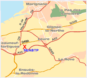 - A55 sur 15 km, direction MARTIGUES-FOS S. MER-MONTPELLIER
